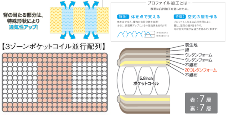 *5.8インチポケットコイル・3ゾーン並行配列