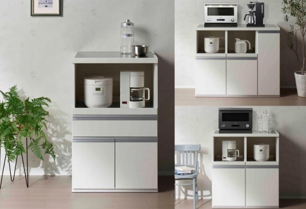 - 可動棚は3cm刻みで調整可能。