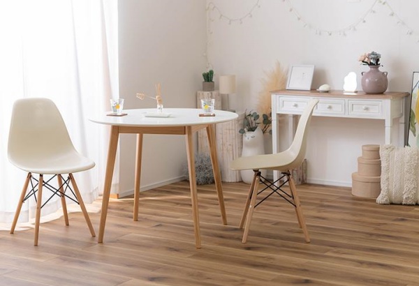 脚がハの字に広がっているのでスッキリとしており、どんな種類のチェアとも組み合わせやすいテーブルです。