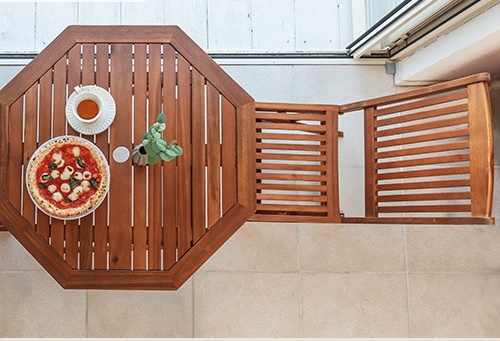 ・天然木ならではの木目が温かみのあるガーデン用の八角テーブル。