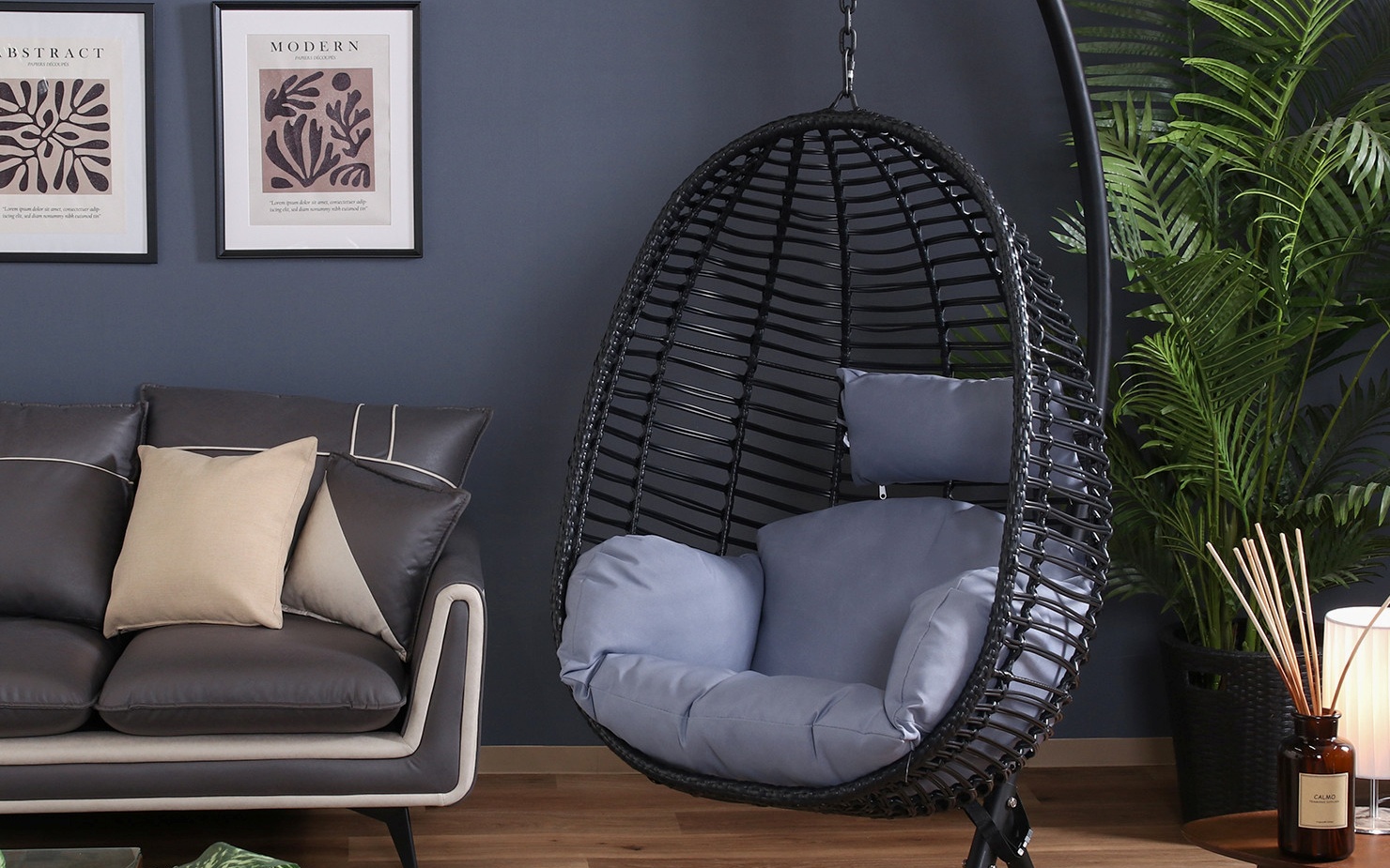 家でバカンス気分が味わえるハンギングチェア!包み込まれるような丸みのあるデザインでゆったりゆらゆらと揺られて癒されること間違いなし!耐荷重80kgで大人も子供も楽しめます。 カラーバリエーション