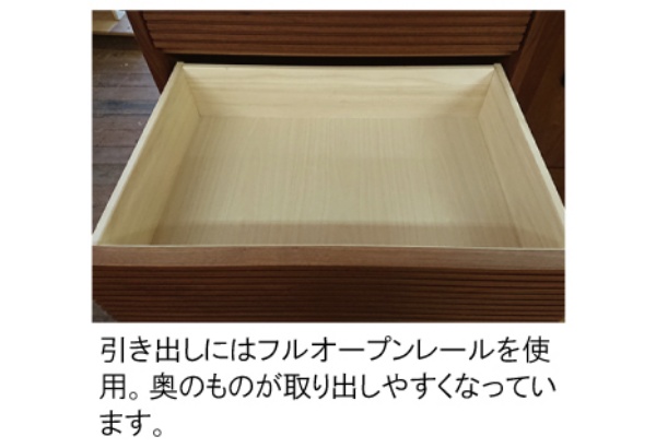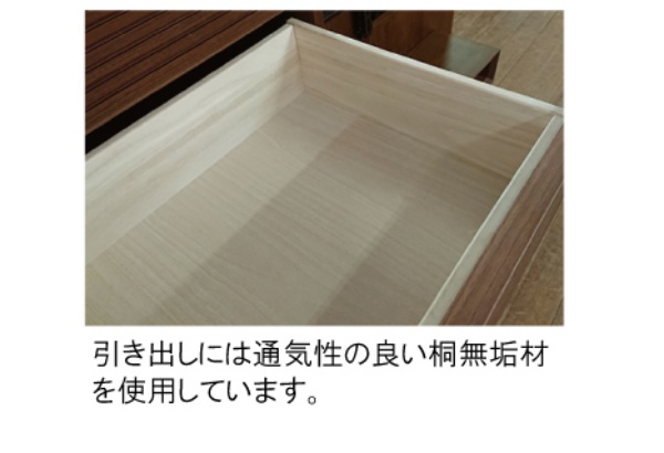 引出には、通気性の良い桐無垢材を使用。また、フルオープンレールで奥のものまで取り出しやすくなっています。 カラーバリエーション