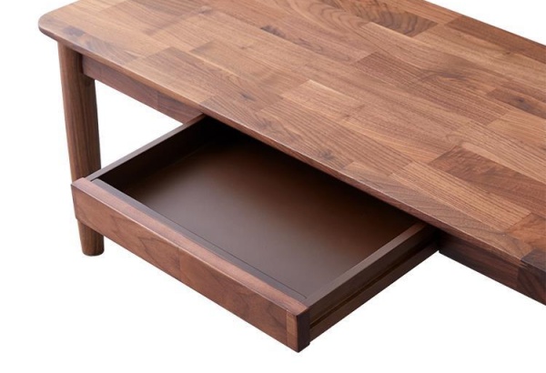 小物の収納ができる引出し付き! 天板はウォールナット無垢材を使用。