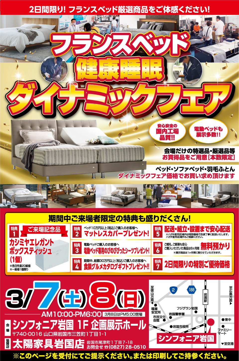 フランスベッド 健康睡眠ダイナミックフェア 会場:シンフォニア岩国 1F企画展示ホール