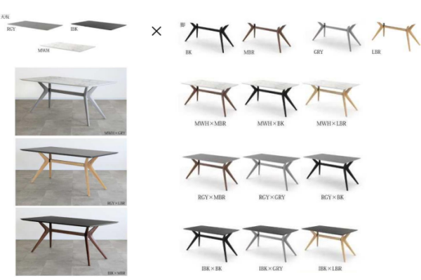 天板3色×脚4色でお好きな組み合わせをお選び頂けます。